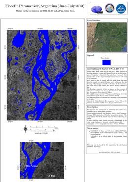 Las Fuertes lluvias, que empezaron el pasado 19 de junio de 2013, han provocado inundaciones a lo largo del curso de los ríos Paraná e Iguazú, en la región litoral de Argentina. Hasta el momento, cientos de personas han tenido que ser evacuadas de sus casas, aunque se espera que se tendrá que evacuar a miles.