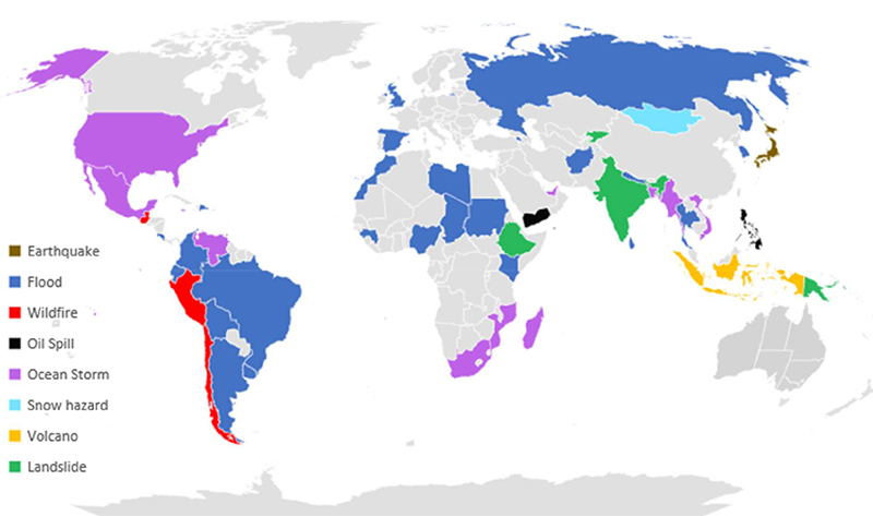 - Flooding in Chad with 576 deaths (affected 1.9 million),