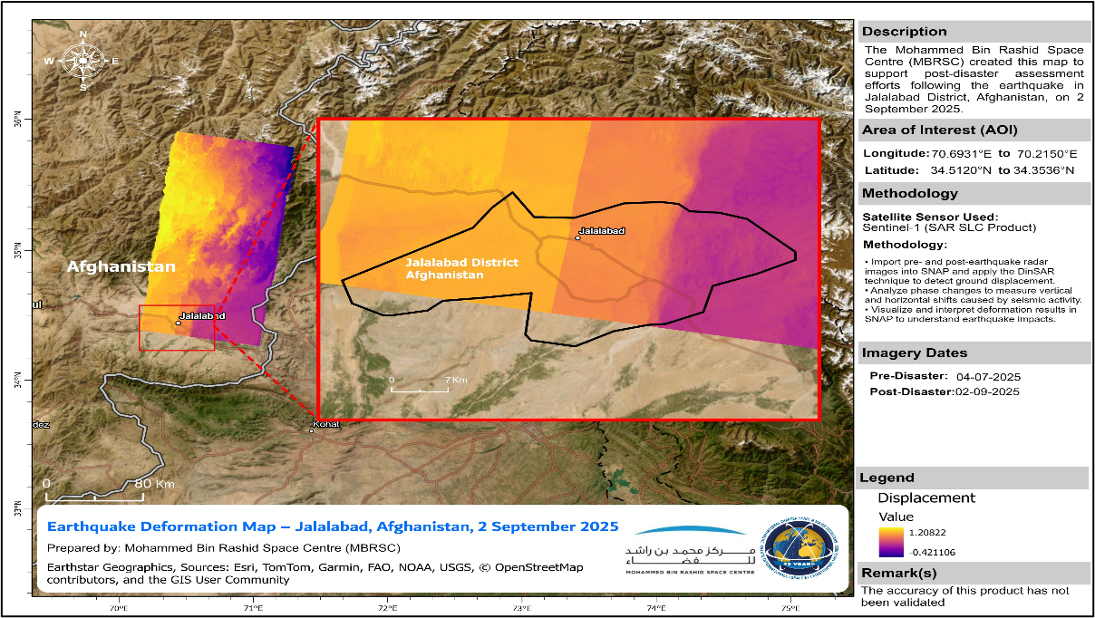 Al Awadhi further added: “The UAE’s investment in Earth observation satellites such as KhalifaSat (integrated to the Charter), MBZ‑SAT and Arab satellite 813 strengthens our ability to contribute data products that support disaster assessment and recovery. Through our Space Data Center, the UAE transformed satellite imagery into actionable insights. These reports ensured that international responders had access to reliable, high-resolution assessments during critical early hours”.
